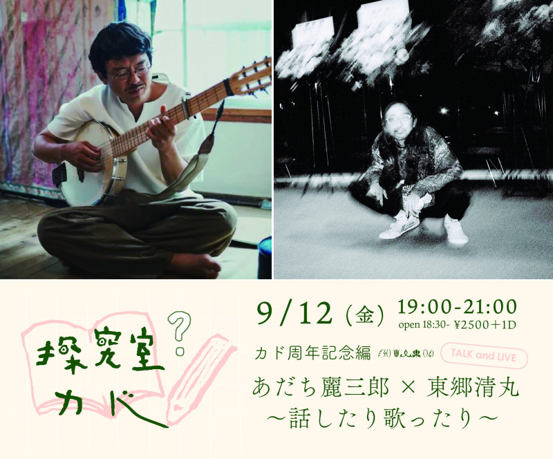 探究室カドの周年記念編として、音楽家のあだち麗三郎さんと東郷清丸さんのお二人をお招きします。